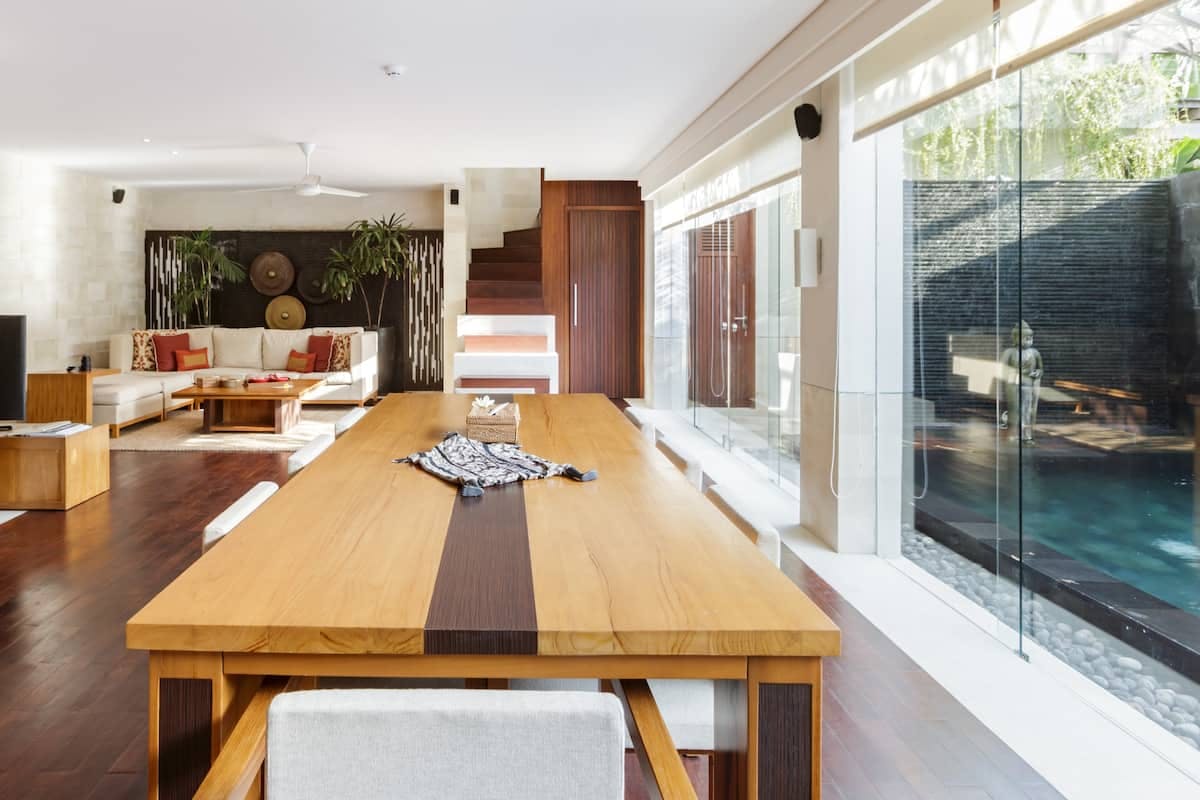• Livingroom: Pool view, table for 6, guest bathroom, 2 air con.